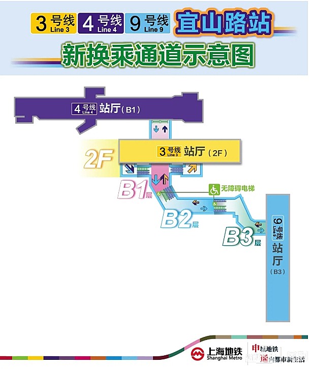 6月22日,上海地铁3、4、9号线宜山路站迎来了新换乘通道的正式启用,临时了十余年的“蔬菜大棚”正式关闭,大家告别了“地上”通道,迎来了有空调的“地下”换乘。