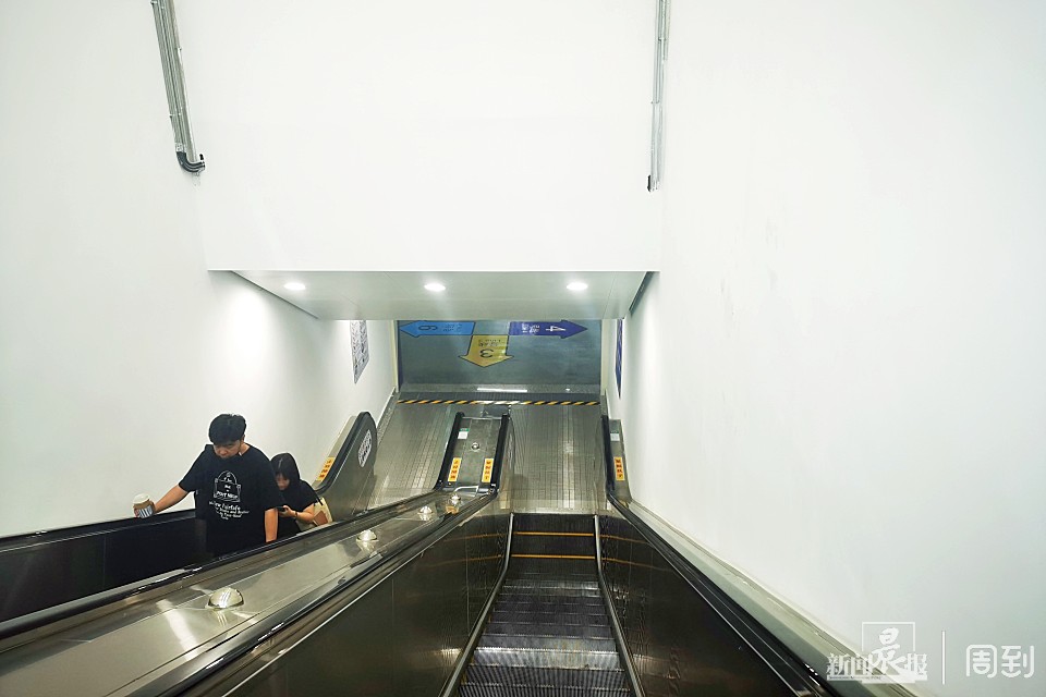 相比于原先的“蔬菜大棚”,崭新的换乘通道与地铁风格更为适配,明亮的大厅,宽敞的通道,简洁的指引,头顶上则是一排排正在运行的空调。