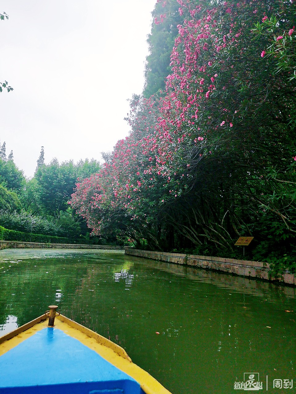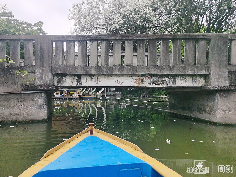 “小时候门口有好多推车小贩在叫卖,卖玩具的、卖棉花糖的、卖馄饨的,最稀奇的是这里可以开船!每次来玩都好开心。”在这里住了大半辈子的蒋先生在回忆起童年时满脸的笑容。他所提到的划船也是康健园的一大特色项目之一,早在1957年上海文化出版社推出的《上海及近郊一日游》就有提到康健园“可品茗,可溜冰,可骑驴划船。” 让无数人念念不忘的康健园划船项目有什么魅力?走进康健园,顺着工作人员的指引,可以看到密密麻麻的小船挨在一起,走过桥就能看到船码头和售票窗口,因为是工作日的缘故,并没有人在窗口排队等候。 窗口上写有乘船注意事项和价格,这里的船分为三种:电动船、脚踏船和手划船,船上最多可以坐4个人,电动船和脚踏船分别是40元/0.5小时,手划船则是40元/小时,还有40元押金,超时6分钟扣10元押金,以此类推。据工作人员表示,来玩电动船的人是最多的,一般是家长带着小朋友节假日来,“这两周周末多了好多年轻人,本来不怎么火爆的手划船项目居然都要排队了。” 为了体验最原始的划船乐趣,记者选择了手划船。因为从未划过船,记者穿上了救生衣也犹觉忐忑。工作人员见状安慰道,“不用担心,很简单的,而且这种铁船很稳,基本上是不会翻的。” 一踏上船,小船立马开始摇摇摆摆在水面上游动,而这艘飘摇的小船面临的第一个难题就是如何过桥洞。“在你的右手边握桨时,左手在上,右手在下,反方向的时候双手的顺序也调换一下。”“船撞上岸边也别急,速度很慢的,用船桨一撑就可以调整方向了。”工作人员在岸上指导,记者成功驶出桥洞,看两边的风景时也有了心旷神怡的感觉。 在船上看风景和在岸上看风景确实是两种截然不同的体验,岸上行走稳稳当当,平平常常,水上行舟却是一直摇摇晃晃。此时正值盛夏,康健园的草木都在蓬勃生长着,每行到一处,景色都不同,最令人难忘的还是岸边一排盛开的花,一路行过,还有扑簌簌落下来的花瓣和落叶,累了就躺在花下休息会儿,特别治愈。 尽管水上路程并不算长,但是边划船边拍照打了一个来回也用了四十多分钟,另外,康健园荷花现在还没开,想看荷花可以多等半个月到一个月左右,工作人员表示,天气越热,荷花就开得越早。