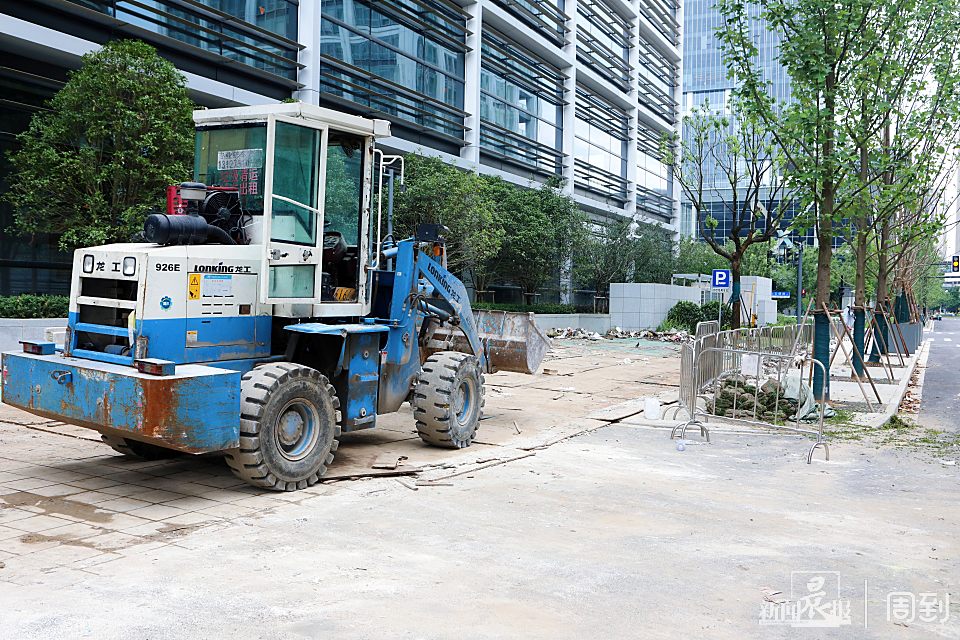 经过红绿灯时可以看到与之相交的马路就是云绣路,一侧是刚刚开通的新支路,另一侧依旧被围住,并未开放。走到龙华机场路尽头,可以看到正在清理装修垃圾的清运工人和挖掘机,工人师傅表示,他们已经在此清理了两天左右。