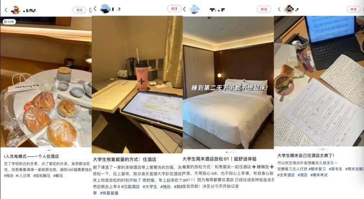 周末既不留守在家,也不蹲守宿舍,作为一个i人,今年大四的Iris早早为自己的周末设定了更养生的“躺平”模式。就在校园附近,每周随自己的喜好选酒店“宅”一天放空,缓解日常课业学习的压力;考试周独自住酒店,更能集中注意力高效复习。