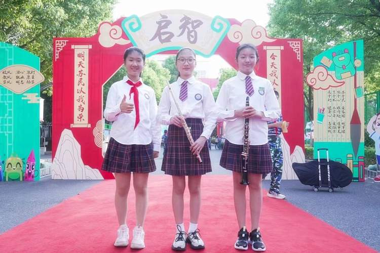 苏民学校用学生的祝福心愿贴和校园手绘图装扮校园。升旗仪式上,学生代表、家长代表和校领导共同寄语,祝愿同学们乘风破浪,不负韶华。