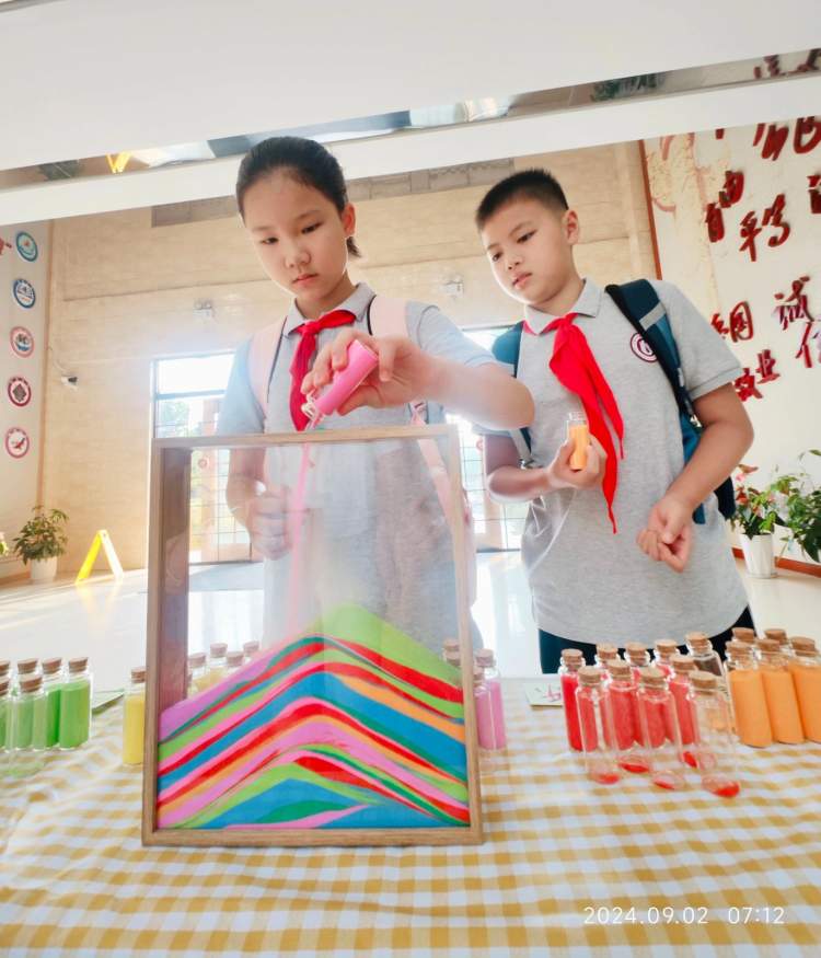 上海大学附属嘉定留云小学准备了精彩纷呈的开学活动,学生们制作漆画书签体验中式浪漫,在奥运五环心愿墙上写下心愿卡,书写学期梦想。