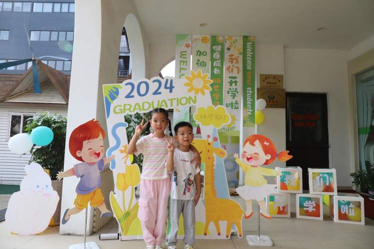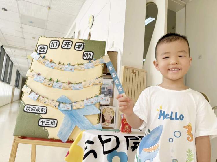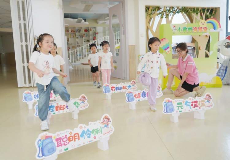 浩翔幼儿园的孩子们在老师的带领下,兴奋地跳过特制的“祝福板”,每跳一次都伴随着清脆的笑声,仿佛是在跳跃中接受着满满的祝福。园内处处可见迎接新学期的装饰,为孩子们的新篇章添上了美好的一笔。