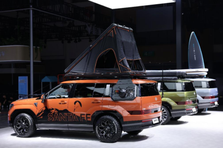 第五代胜达秉承“Cross the line(打破界限)”的研发理念,融合了突破空间和时间的限制,将城市、户外、复古、未来、科技等元素。外观采用“方盒子”设计,并在行业内开创了“户外轻野”新赛道。