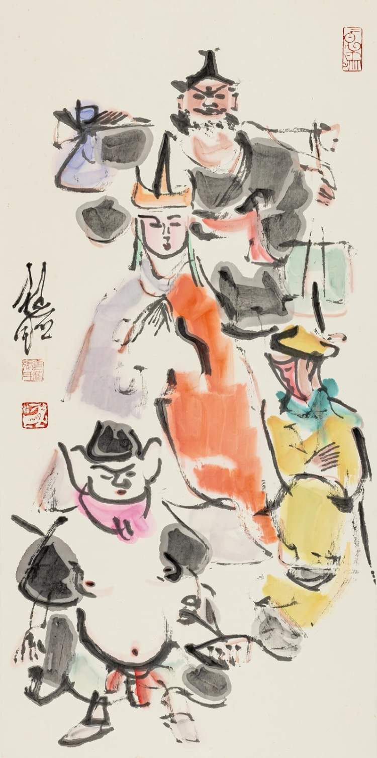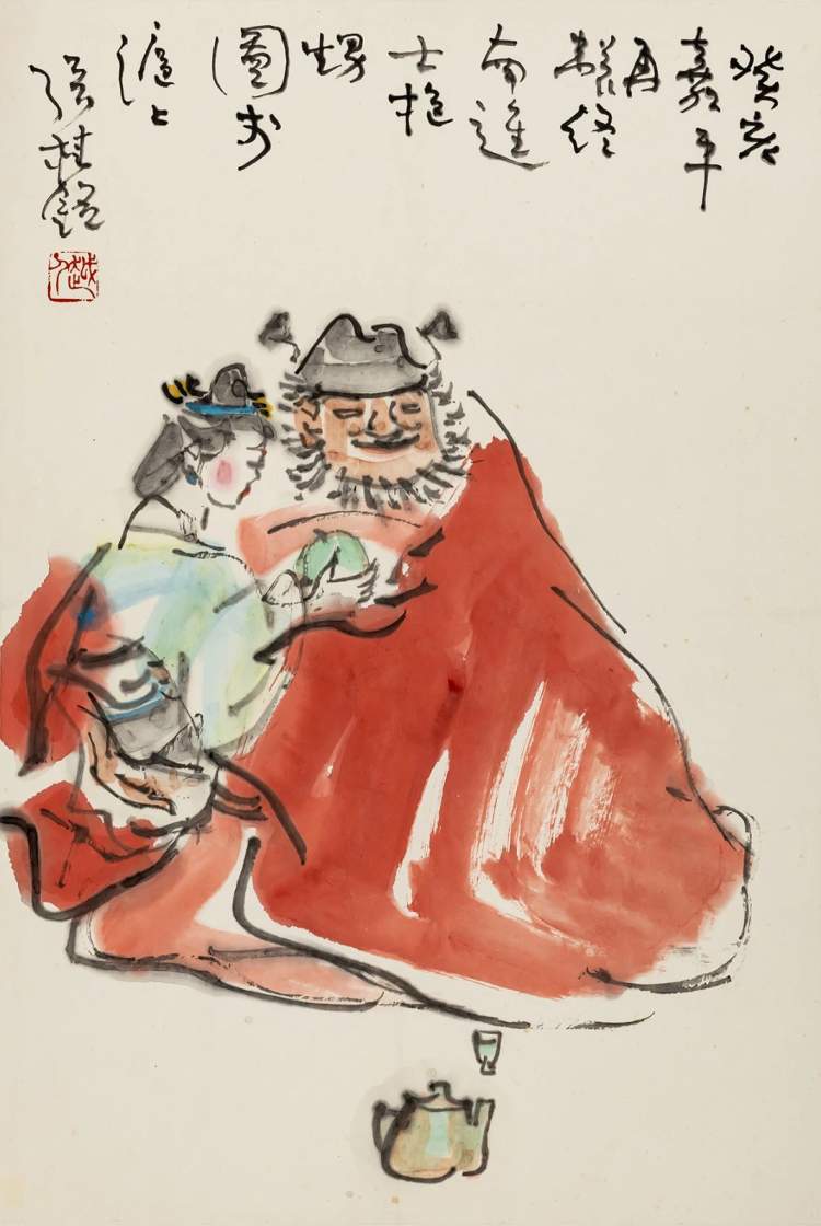 观众们会惊讶地发现,张桂铭先生的画风前后变化巨大,其艺术理念呈飞跃之势。张桂铭先生的早期人物画还留有明显的浙派人物画风格,但是仅仅过了10年,他便脱胎而出,迅速转型,从线条、构图、色彩、符号等方面全方位突破,奠定了强烈的个人风格。