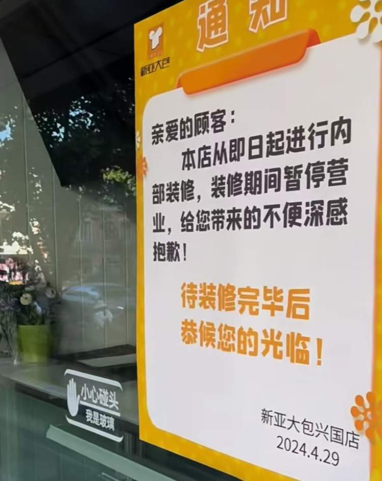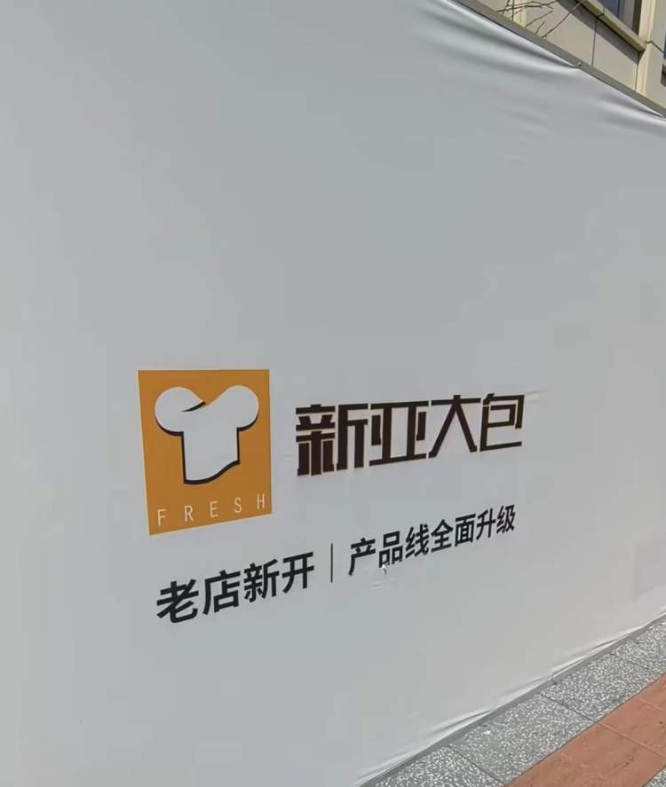 最近,有市民发现,该店外围已立起装修围挡,而在围挡之上,贴了新告示:“老店新开,产品线全面升级。”上面还有新亚大包的品牌名,和熟悉的那顶白色厨师帽LOGO。