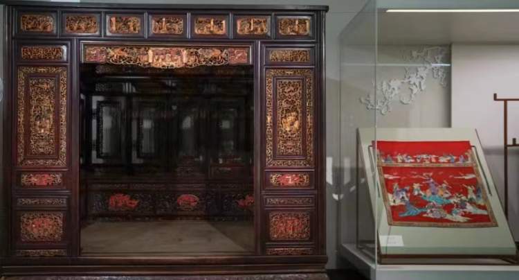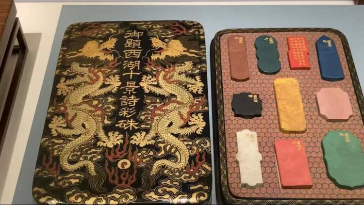 展期很短的文物展品,还有展期为2个月的南宋至元代的黑漆莲瓣形奁、明晚期韩希孟绣花卉虫鱼册,展期3个月的明代缂丝群仙拱寿图、清代蓝地卐字纹织金缎匹料、清代汪节庵制西湖十景诗彩硃墨,展期4个月的明代“绿天风雨”蕉叶式黑漆琴、清代潘西凤留青菊石图笔筒,展期6个月的清代卢葵生漆砂砚。另外,清代红地海屋添筹图织金锦缎椅披四件套,将轮换展出。