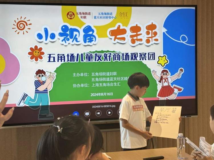 近日,由五角场街道妇联、五角场街道蓝天社区睦邻中心联合合生汇商场共同举办“小视角 大未来”的活动,本次活动旨在通过孩子们独特的视角,探索并推动合生汇商场成为更加适合儿童成长与家庭共融的友好空间,共同绘制未来儿童友好型社会的蓝图。