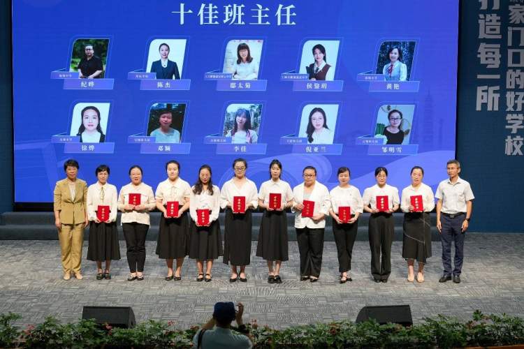 许敏杰和姜小静共同为“十佳班主任”、“十佳教学能手”和“十佳青年教师”等30名优秀教师颁奖。