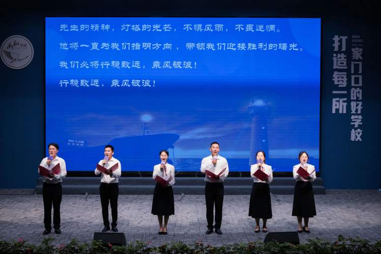 高山巍峨,令人景仰;先辈风范,激励自强。南翔小学的教师们则通过诗朗诵《致·先生》深情缅怀了南翔教育的先驱许苏民先生,字里行间流露出对教育事业的热爱与执着坚守。