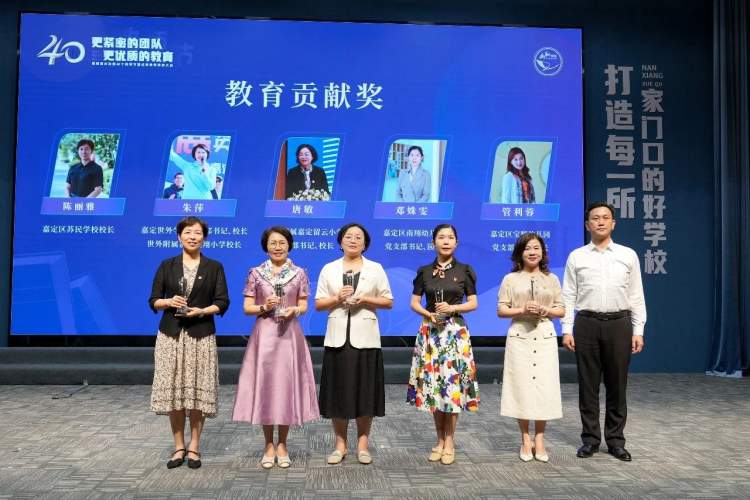 在示范性学区建设的过程中,南翔镇的校园长们在教育管理、教学创新等方面作出了突出贡献,为南翔学区的发展注入了强大动力。庆祝活动上,叶斌为荣获“南翔教育贡献奖”的5位校园长颁发奖杯。上海大学附属嘉定留云小学党支部书记、校长唐敏代表获奖校长表态,将继续扎根在学区,为南翔教育高质量发展作出贡献。