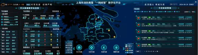 上海市消防警情数据和实时处置画面、公共场所人流热力图、各级消防救援力量撒点分布、全市开业消防检查网办率、社会单位消防隐患整改情况……通过近年来的不断建设,政务服务“一网通办”、城市运行“一网统管”已经是上海的“金名片”,也是未来上海这座超大型城市数字化转型的关键着力点。上海市消防救援总队聚焦“两张网”建设持续发力,深度融入上海城市数字化转型,围绕应急救援、火灾防控、社会服务和队伍管理等中心工作,推动消防安全治理体系和治理能力现代化。