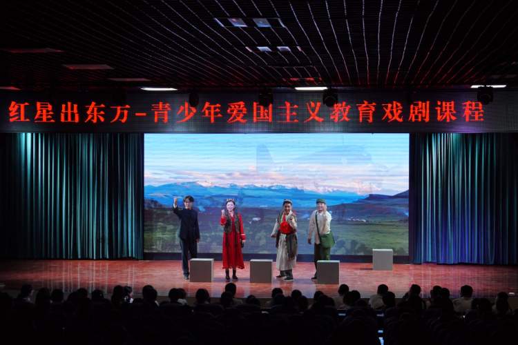 据了解,这场由上海夏征农民族文化教育发展基金会研发的“红星出东方——青少年爱国主义教育戏剧课程”,早在5月执行方上海圣夏文化传播有限公司就带队到喀什的泽普县、莎车县、巴楚县和叶城县进行了实地调研,在一周的时间里,从联络学校、勘探演出硬件到组织一场成功的戏剧课程,事无巨细面面俱到;而此次广受学生欢迎的戏剧课程内容和演出形式,也是携手上海党史专家及上海青年戏剧演员团队反复打磨而成的。