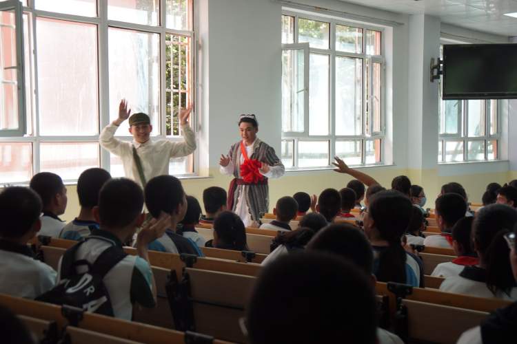 四排小马扎、后四排全程站立……首次以戏剧表演开启的“开学第一课”德育教育,在喀什泽普县的学校5天8场辗转演出,受到了当地师生的热烈欢迎和互动。