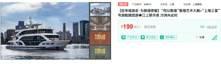 与此同时,各分会场与上海文旅行业也推出各类主题产品。春秋推出了“九色敦煌.五彩申城”、“江上明月夜,沙洲共此时”、“烁灼明珠,瑰玮敦煌”三款高性价比的主题产品,与都市观光车、东方明珠登塔观光以及“上海之星”游船等产品进行组合,优惠力度巨大。