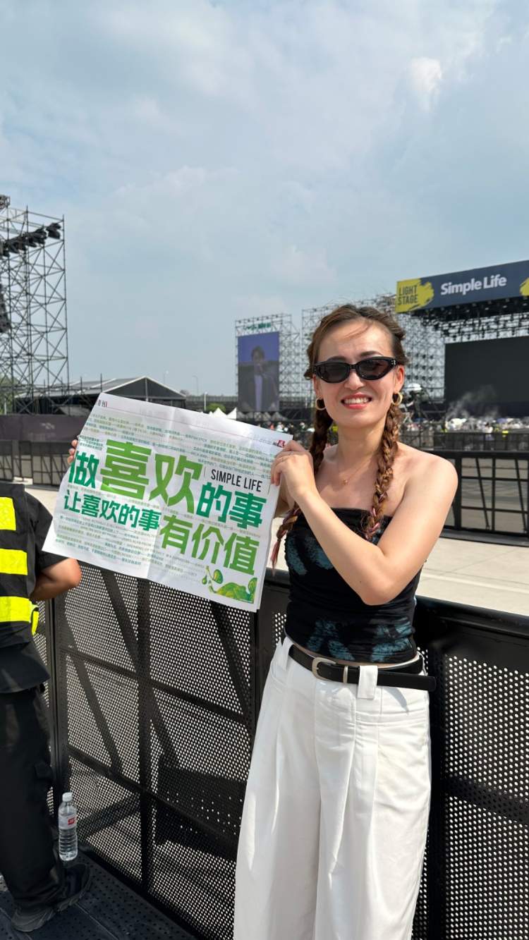 尽管天气炎热,但一点都没有阻挡歌迷的热情,许多人在还未开始前就已早早来到歌迷区等待开始,还有许多粉丝领好了“新闻晨报简单生活节特刊”,在各处打卡纪念合影。