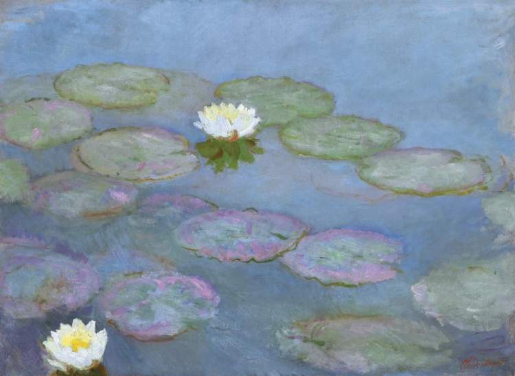 莫奈创作睡莲前后跨度长达将近30年,有多个系列组画,这幅《睡莲》属于他最早期的第一个睡莲系列。早期的睡莲,莫奈非常注重细节和层次的刻画,和他晚年模糊、松散的画法有非常大的区别。
