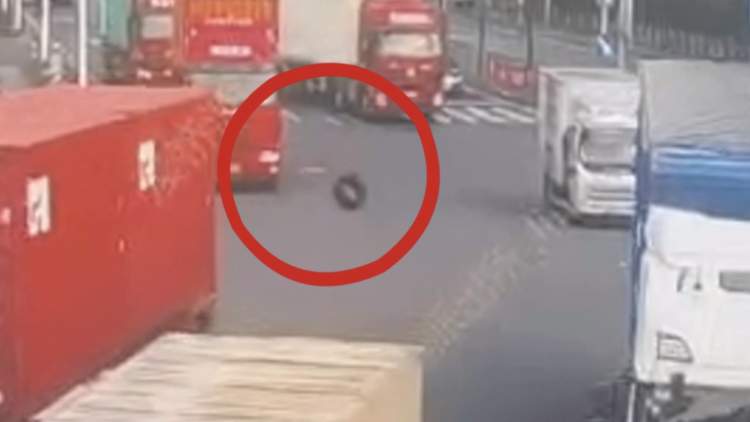 原来,鲍先生车上原本运输着10个轮胎,由于固定轮胎的锁扣生锈,在行车过程中锁扣断裂,3只轮胎从车上掉落到地上,但鲍先生并未察觉到这一突发情况,直到他将车开往目的地卸货时才发现“闯祸了”。