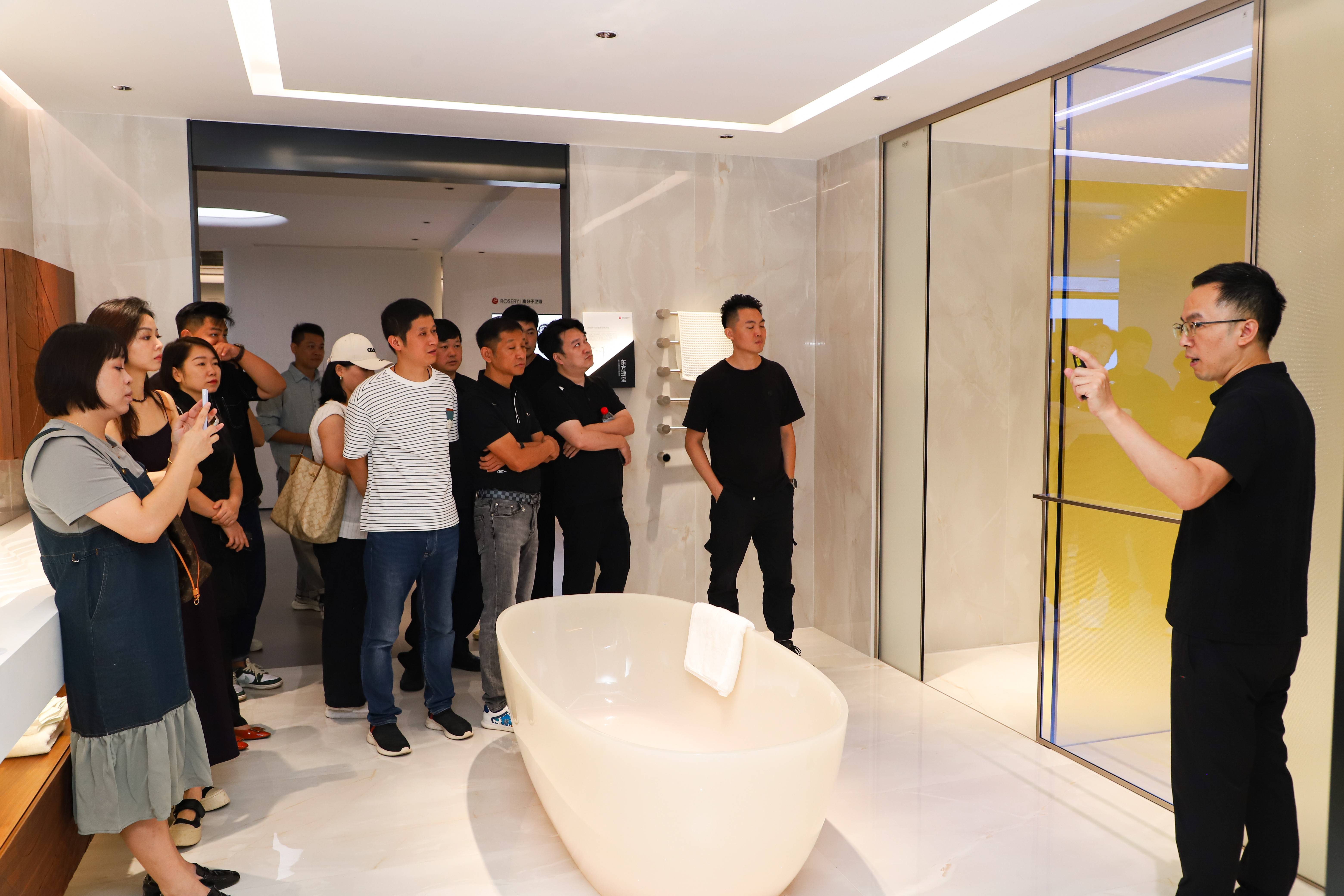 当研学之旅队员们走进玫瑰岛焕新启幕的全卫定制太空馆、全景家居形象馆,惊叹于玻璃和金属的千变万化。沉浸式的场景体验,让设计师们真切感受玫瑰岛“双核”家居的独特魅力。玫瑰岛行业唯一“同风格、同色系、套系化设计”的全卫空间、全景家居的无醛人居环保理念,为设计师们打开全新的灵感世界。