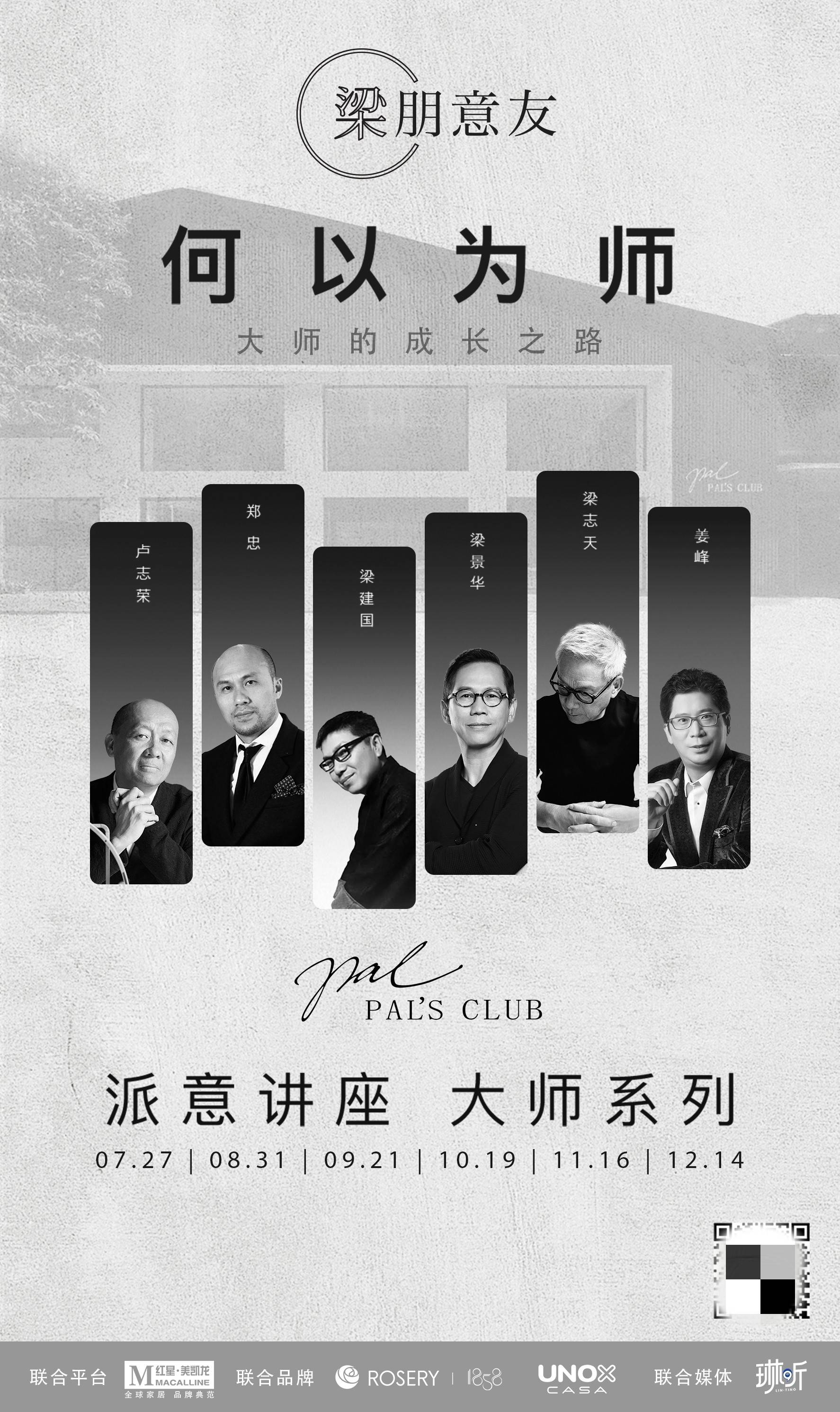 本期大师讲座,由北京集美组创意总监、中国陈设艺术专业委员会执行主任梁建国,YANG设计集团创始人/首席设计师、全球十大杰出华人设计师、中国室内装饰协会副会长杨邦胜,李益中空间设计创办人 / 设计总监、中国建筑学会(全国)理事李益中,PAL DESIGN GROUP设计董事、香港室内设计协会前会长何宗宪等享誉国际的设计大师担任主讲嘉宾,分享大师成长之路背后的故事。