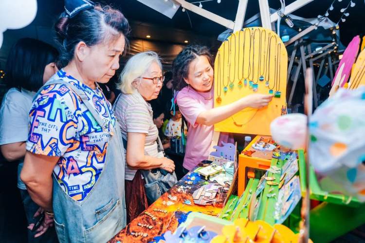 在市集现场,公鸡会KANGAROOSTER原创的艺术手工艺品让人爱不释手,社区手作达人的棕编作品也令人赞叹不已。来自长征镇阳光之家的特殊匠人们也带来了独具特色的手工制品和充满童趣的玩具,吸引了众多市民在摊位前驻足挑选。他们以热情洋溢的产品介绍和周到的服务,成功抓住了商机,展现了残疾学员自信和自强的精神风貌。