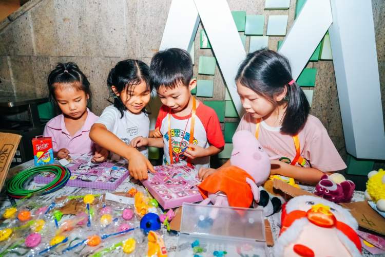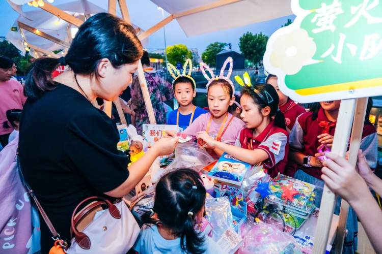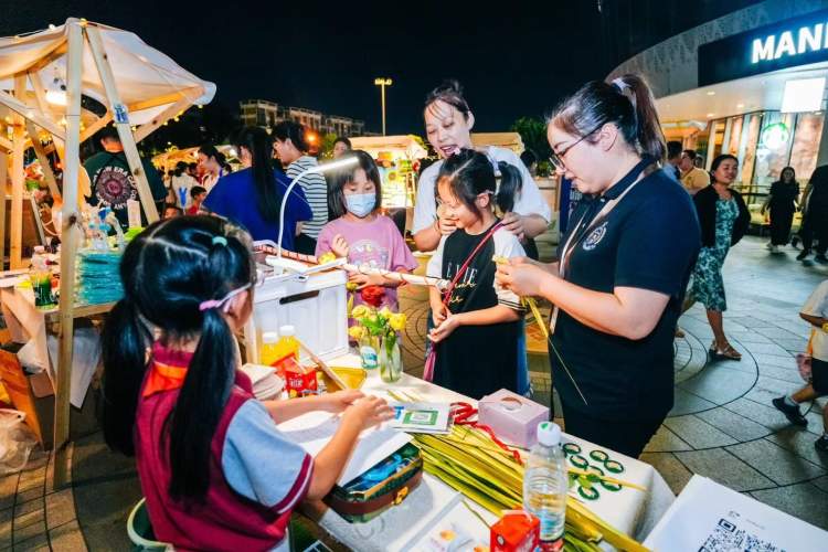 即使不是周末,社区里的小朋友们在完成学校学业的情况后,携手父母同伴,来到自己的摊位售卖货物。摊位上,各种有趣的创意商品纷纷亮相。有的小朋友挥舞着手制的招牌,大声叫卖着自己的产品,有的小商贩还机灵地讨价还价,进行着一场生动的交流。