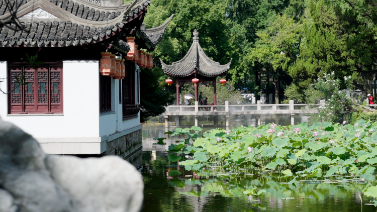 最后,来到古猗园,这里旖旎的自然风光与典雅的明代建筑交相辉映,随意踏上一条花石小路,两旁是幽静的曲水与葱郁的绿植,每一步都踏着诗情画意。