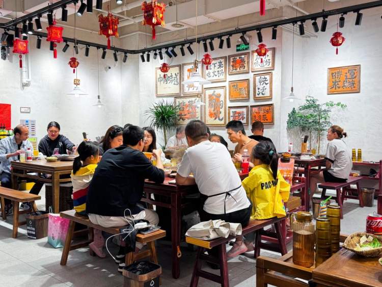 夜幕降临时,槎溪路的人间烟火气开始升腾,四川火锅的热烈红油与烤串的诱人香气交织在一起。吸引过客停下脚步,融入城市的灯火之中。