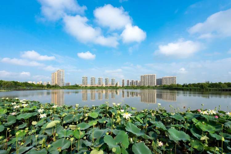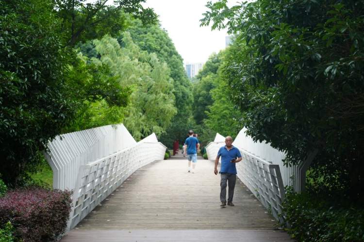 下了桥右拐进入芳菊路,一片宁静的绿洲——留云湖映入眼帘。四周被高楼大厦与精致别墅环绕,留云湖如一片“绿肺”镶嵌其中,为市民和游客提供了一处健身休闲好去处。