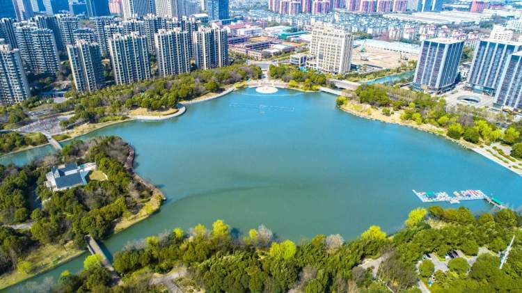 沿着槎溪路向南,就能看见银翔湖了,它与镇北面的留云湖遥相呼应,宛如两颗明珠镶嵌在城市的绿意之中。站在银翔湖畔的亲水平台上望去,风和日丽 、水波荡漾,偶见一群飞鸟掠水而过,径直飞向附近树丛中去。