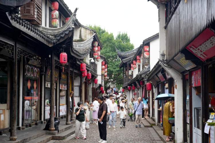 沿着古猗园路向南没多远就就是南翔老街,老街上粉墙黛瓦的古老建筑错落有致,仿佛穿越回了江南水乡的旧时光。在这里,别忘了找一家地道的南翔小笼馆享受美食轻轻咬下一口皮,汤汁四溢,鲜美无比的小笼让人回味无穷。