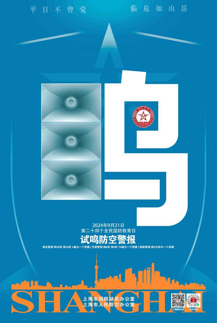 防空警报试鸣期间,上海将深入组织发动以城镇居民、居民区为重点的疏散演练。
