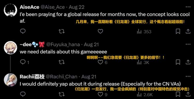 中国游戏出海早已不是新鲜话题,无论是当下引发全球销量热潮的《黑神话:悟空》,还是其他在海外各大游戏平台上畅销的国产游戏,游戏里的东方美学正在影响着更多的人,《归龙潮》也不例外。早在正式公测之前,《归龙潮》的预告片和评测视频就在海内外社交媒体上广泛传播也成功吊足了海外玩家的胃口和关注度。如今游戏正式公测,来自海外的玩家又会如何评价?