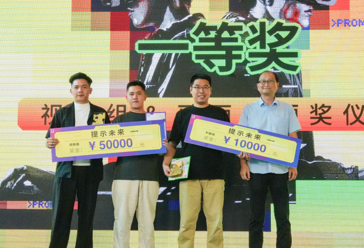 唐晓林为平面组、视频组一等奖获得者颁奖