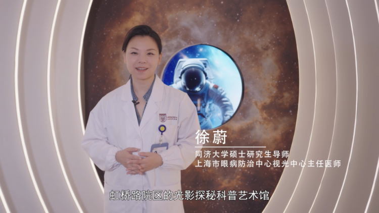 区别以往的演播室口播授课,本次的科普地点设置在上海市眼病防治中心的“光影探秘科普艺术馆”,仿佛开启了一场探索眼睛奥秘的沉浸式体验之旅,上海市眼病防治中心(上海市眼科医院)视光中心主任医师徐蔚主任在讲解同时,依靠全息投影、体验装置等各类丰富的道具,将近视防控知识以可视化的方式展示出来;从日常习惯到专业建议,从营养补充到环境调整,细致地讲解让近视防控知识不再枯燥乏味,一切变得生动有趣、深入人心,成为学生和家长自觉采纳的健康智慧。
