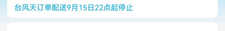 饿了么下单页面显示,台风天订单配送已于15日22点起停止。