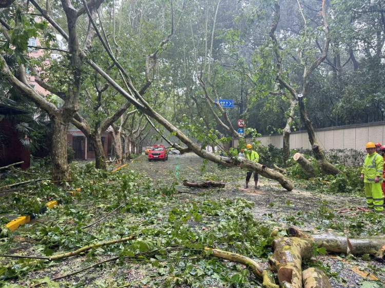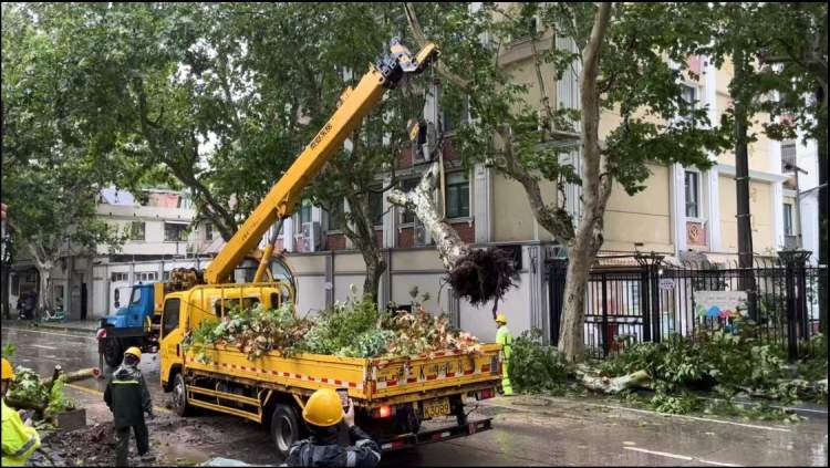 今天上午,徐汇区衡复风貌区的多棵悬铃木(也称“法国梧桐”)被发现倒伏,徐汇绿化抢险队伍紧急出动,对倒伏悬铃木采取截断树枝,清走树干的抢险措施,尽快恢复交通。据市绿化管理指导站统计,截至今天上午9时,全市共倒伏行道树1180棵。