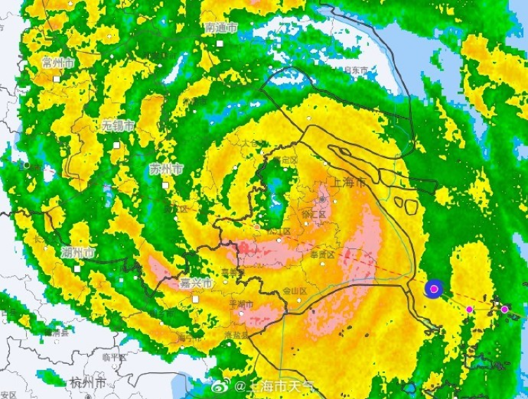 其中,浦东南汇新城镇自动站测得129.5毫米大暴雨。全市大部最大阵风超过6级,崇明陈家镇最大,达到13级,这个量级在陆地上很少见。