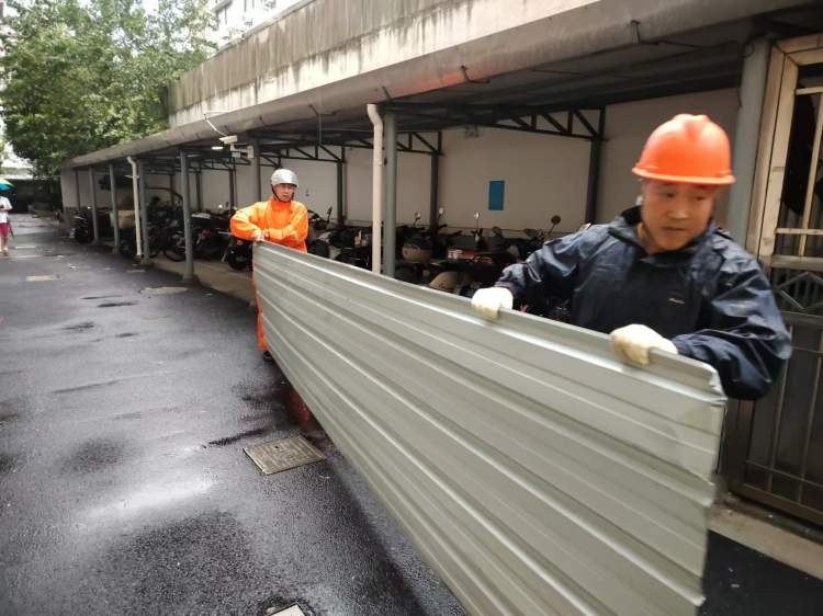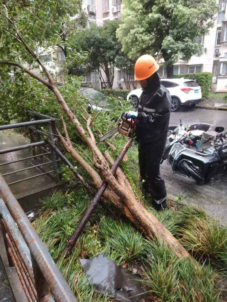 这次台风主要是风大,且风速快。造成小区里的树木大量倒伏,还有一些公共设施的简易围墙倒塌,还有就是老旧小区的窗户、雨棚、太阳能热水器出现的险情比较多。