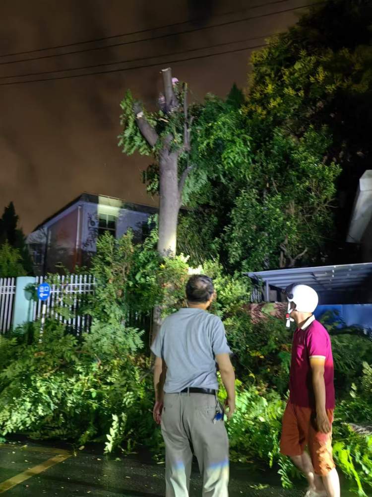 昨天上午,殷行街道邱书记再次开展实地督查,现场办公,要求小区物业经理全员上岗,并组织人手关闭楼道窗户,在小区内播放宣传语,提醒居民自行将室外花盆、衣架等收入室内,避免高坠隐患。晚上,邱书记来到街道物业应急抢险中心,再次督促各小区做好台风来临前的最后巡查。晚上9点,各小区共发现并处置明沟堵塞、窨井不畅、树木倾斜、楼道窗户大开、阳台花盆未收走等各类隐患243处。