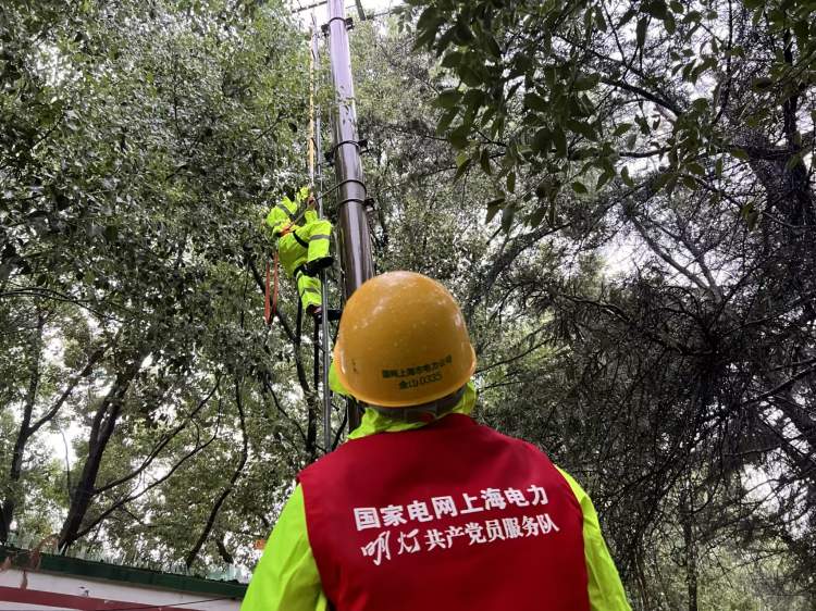 国网上海电力按照“先复电、再抢修”的原则,优先保障城市“生命线”、居民供电,并遵循“水退人进电通”原则,安全、科学组织抢修。16日上午起,国网上海电力抢修人员利用风雨稍弱的间歇开展梯次抢修,争分夺秒保障供电。