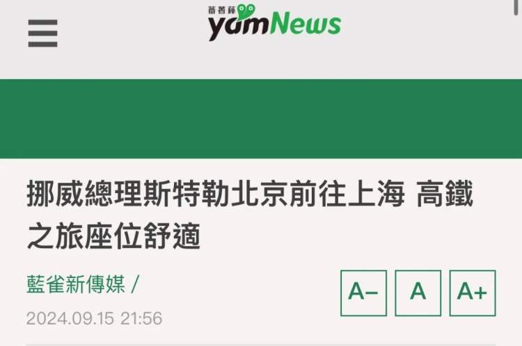 专访片段被多家岛内媒体引用,岛内广传挪威首相赞叹大陆发展。有岛内网友留言表示,“从访谈画面看又快又稳”“大陆的科技和发展可见一斑”。