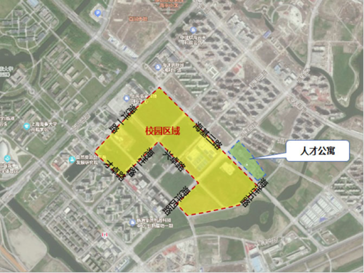 其中校园区域位于海洋一路-海基三路-海洋五路-兴卓路-海洋二路-才卓路围合区域,配套人才公寓位于规划C04-07地块。