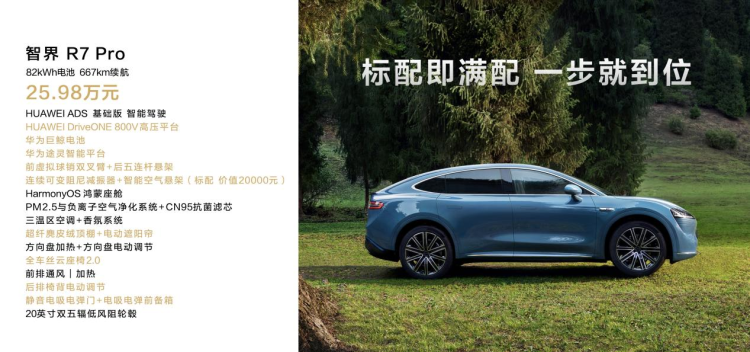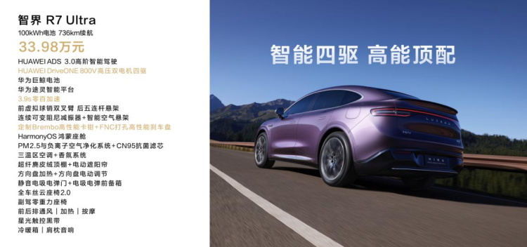三是正式发布鸿蒙智行首款轿跑SUV——智界R7,售价25.98万元起。