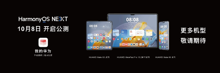 一是纯血鸿蒙HarmonyOS NEXT将于10月8日正式开启公测,首批公测机型包括华为Mate 60系列、华为Mate X5系列和华为MatePad Pro 13.2系列。