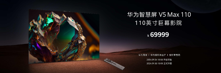 二是发布华为史上尺寸最大(110英寸)、画质最强的华为智慧屏 V5 Max 110,售价69999元。