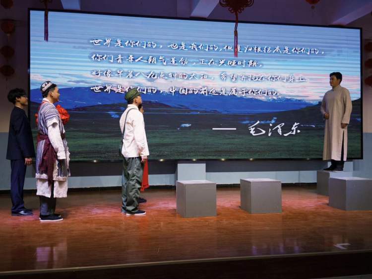 作为“文化润疆”的落地项目,这堂由5位演员加一位党史学者采用“演+讲”来呈现的戏剧课程,每到一处都赢得了师生们如雷的掌声和不绝的称赞。