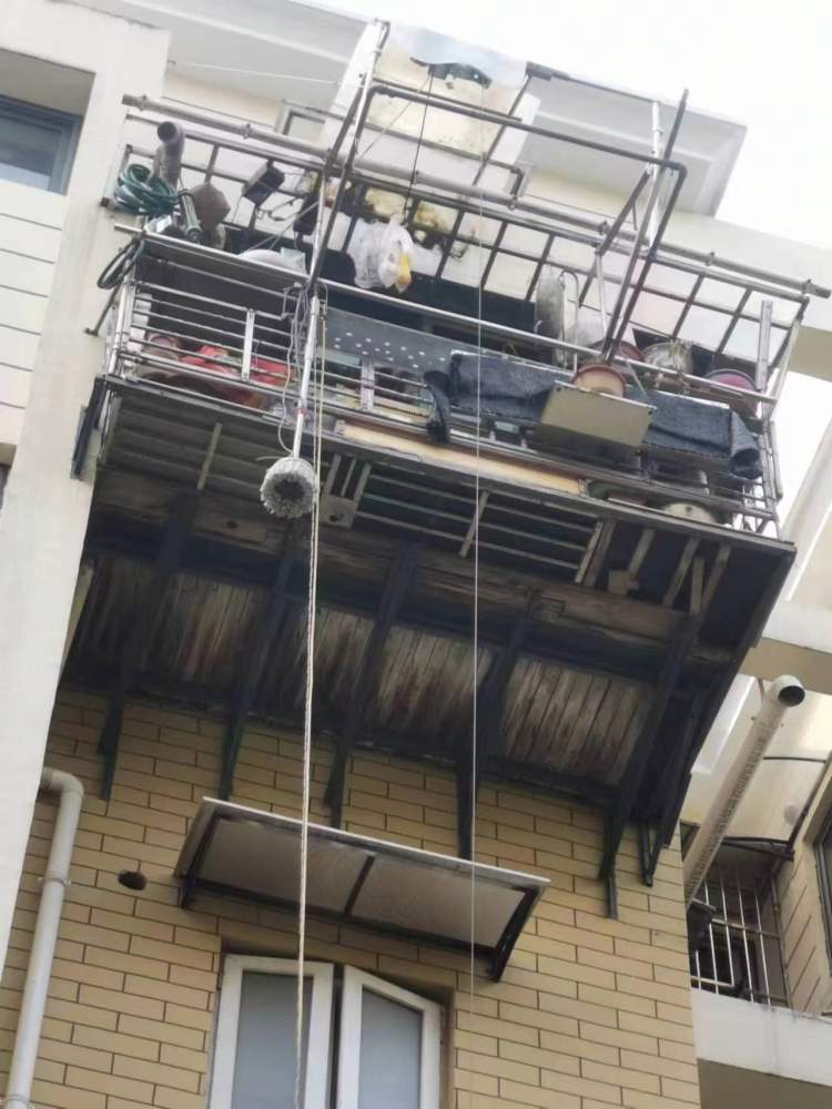 近期,虹口区凉城新村街道综合执法队队员接到居民投诉,称小区某户业主私自在空中违章搭建,不仅影响小区美观,更有很大坠物风险,希望予以解决。执法人员向居委、物业了解基本情况后来到现场,果不其然,该户业主在自家窗外凭空建造一处小阳台,并在其中放置洗衣机等重物,不仅危及自身安全,也给过往行人带来巨大风险。经执法人员耐心劝导,业主认识到违章搭建的危害性,同意立即自行整改。复查结果显示,违章建筑已被妥善拆除,房屋恢复原貌。