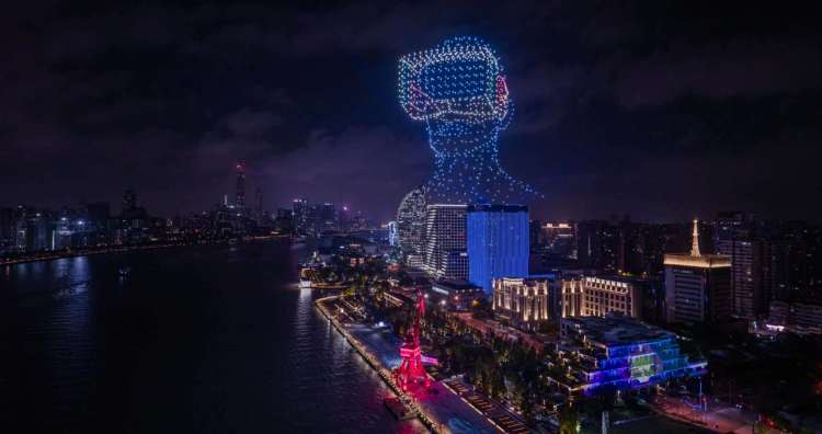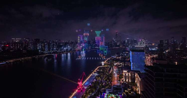 千架无人机空中演绎奇妙光影,杨浦、浦东用灯光“打招呼”